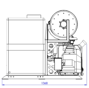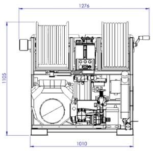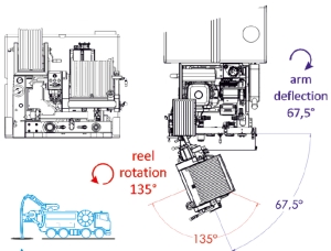 - Schlauchaufroller befindet sich auf den Arm mit horizontaler Aufhebung um 67,5° mit der Möglichkeit einer zusätzlichen Schwenkung um 135° in horizontaler Richtung